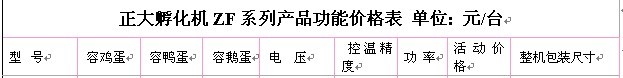 正大孵化可提供孵化機(jī)價(jià)格表參考: